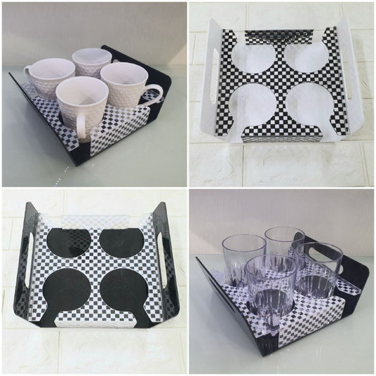 Serving Tray Acrylic Drink Glass Coffee Cup Tea Mug Plate Holder With 4 Holes