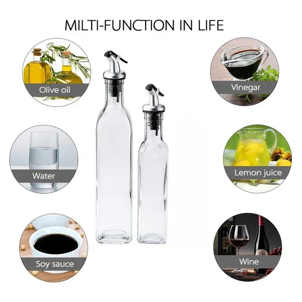 4. Versatile - Great for olive oil and vinegar dispensers, also great for sauces, cooking wine, chili oil and other liquid containers. Beautiful and functional bottles make your home a better space.