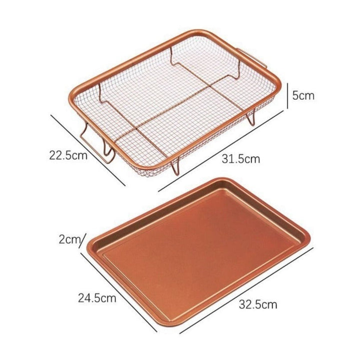 - Allows air to circulate around your food for crispy results without flipping。<br