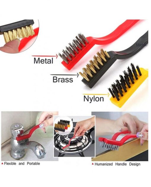 3 Pc Mini Wire Brush Kit: This set includes 3 different brushes for cleaning purpose. Ideal for gas burner, taps and other kitchen appliances . It consists of 3 Mini Wire Brush Set Includes (1) Nylon Wire Brush, (1) Brass Wire Brush, (1) Metal Steel Wire Brush