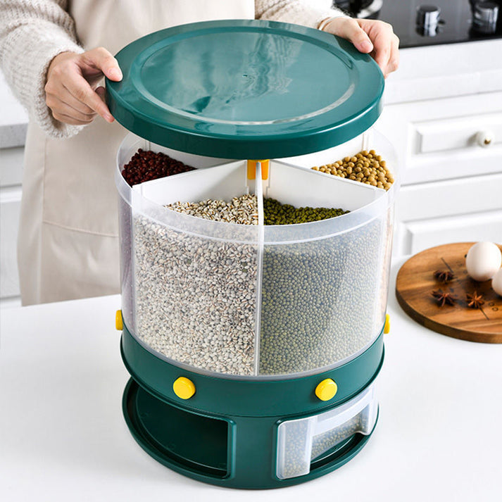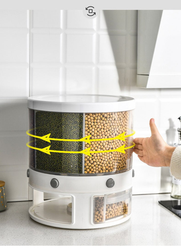 360 Degree Rotary 6-Grids Button Funnel Design Rice Dispenser