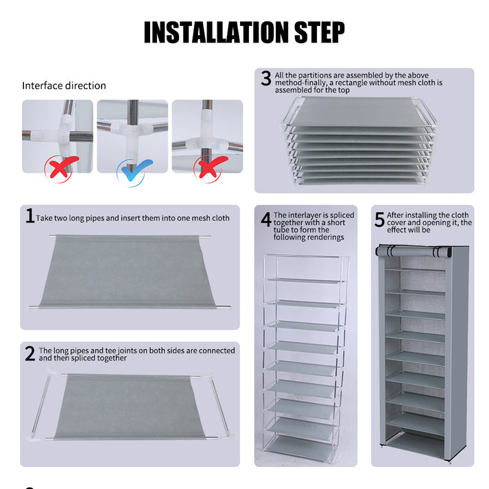- The 6 Layers shoe rack provide huge space to contain your shoes. Constructed from selected non-woven fabric, high quality steel tube and PP plastic connectors, this shoe tower will offer you long term organization system