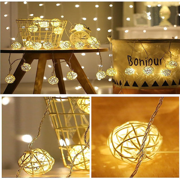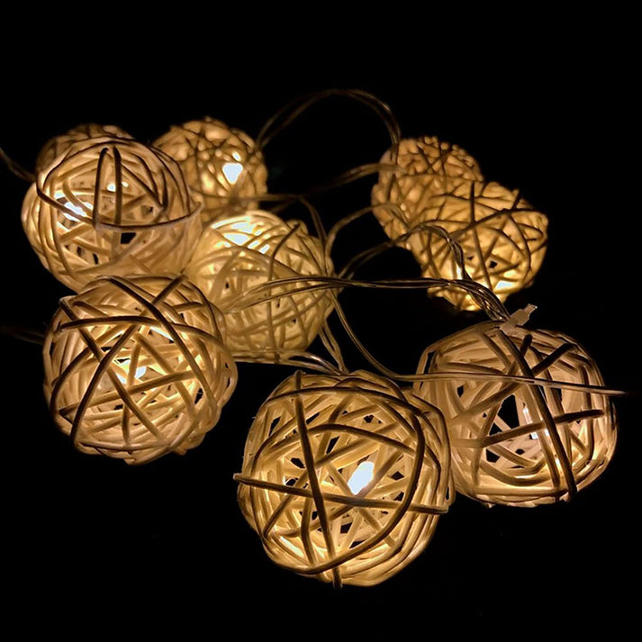 Ascension Thai Warm White Color Rattan Ball String Lights Series