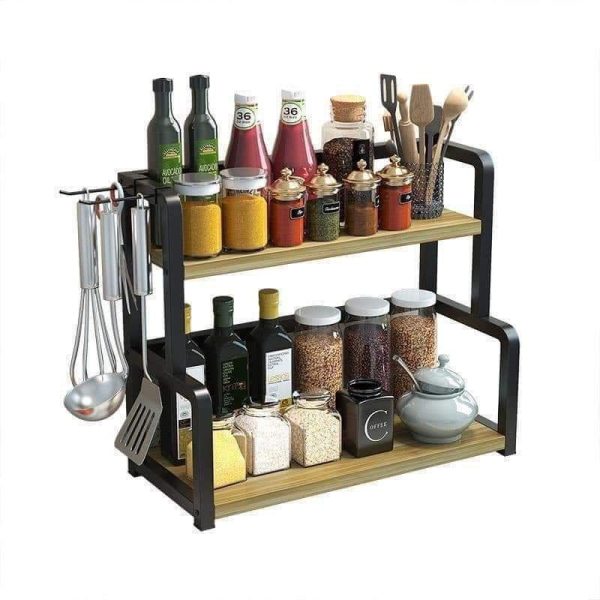 - 【Large Capacity】 15.7”(L) x 8.66”(W) x 16.5”(H), specially designed the narrow top and wide bottom, you can take jars out easily, large capacity allows you place more spice jars, let all be well-organized and save much space for your kitchen, your kitchen will mess up again. Included 3 hooks is removable, you can hanging items that you often use on the hook.