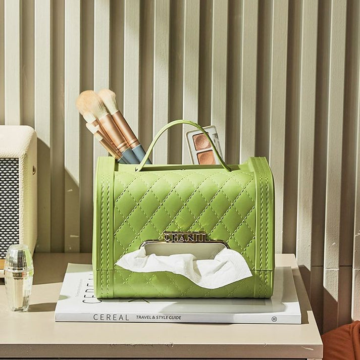 Made from high-quality, durable materials, our Bag Shape Tissue Box is built to last. Its sturdy construction ensures that your tissues stay neatly organized and readily accessible whenever needed. Simply place it on your desk, countertop, or side table for easy reach and a pop of personality.