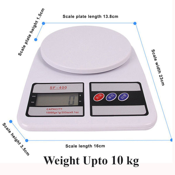 Digital kitchen scale- a kitchen device used to measure the weight of ingredients and other food. Kitchen scales are available in balance or spring models. A balance scale will give a more accurate reading than a spring scale. Using a scale will result in a more accurate measurement of the ingredients than by measuring it by volume.Capacity – the maximum weight and the capacity is 10 kg. The most precise digital scale in its class, with a capacity range from 1 gram to 7 kg, best for weighing the vegetable & fruit & liquid. Use in school, restaurants, offices and many places Easy to use, clean and store – placing your scale on a hard flat surface to ensure accuracy. Clean scale with a damp cloth but do not allow water to get inside. Do not allow scale to become saturated with water. Do not use chemical abrasive cleaners to clean the scale. Do not weight those items heavier than 10 kg. Do not store the scale in an upright position. If the scale is not being used for a long time remove batteries.