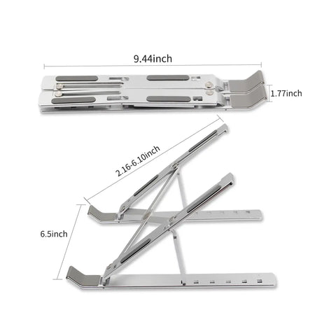 This folding slim laptop holder stand is very portable to carry on. It can be fully folded to the size of 9.4*1.75 inches and easily put into a small storage bag. Ideal lightweight travel Design.