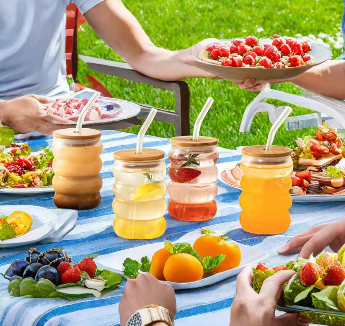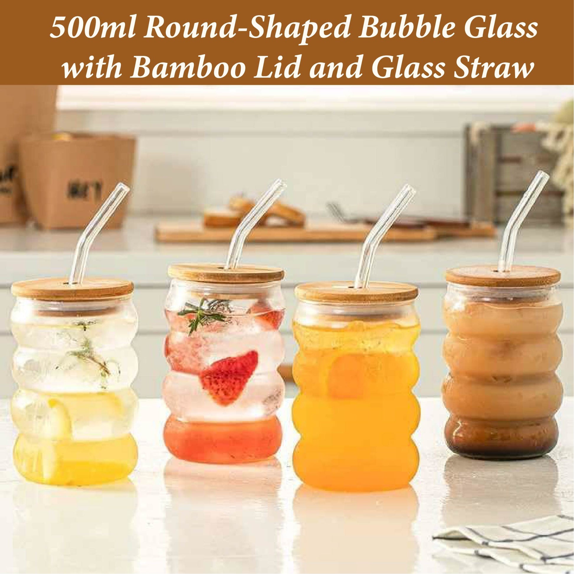 GLASS CUP WITH WOODEN LID & STRAW