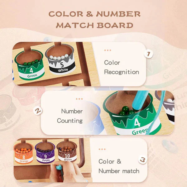 Our magnetic color counting board is designed to enhance cognitive abilities in children. It promotes color recognition, number counting, and sorting skills. By engaging with this toy, children sharpen their logical thinking and problem-solving skills, as well as their focus and patience.