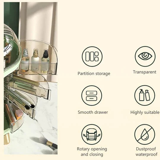 Introducing the epitome of elegance and organization – the Luxury Desktop Cosmetic Organizer. Crafted with meticulous attention to detail, this organizer exudes sophistication while seamlessly integrating functionality into your daily beauty routine.