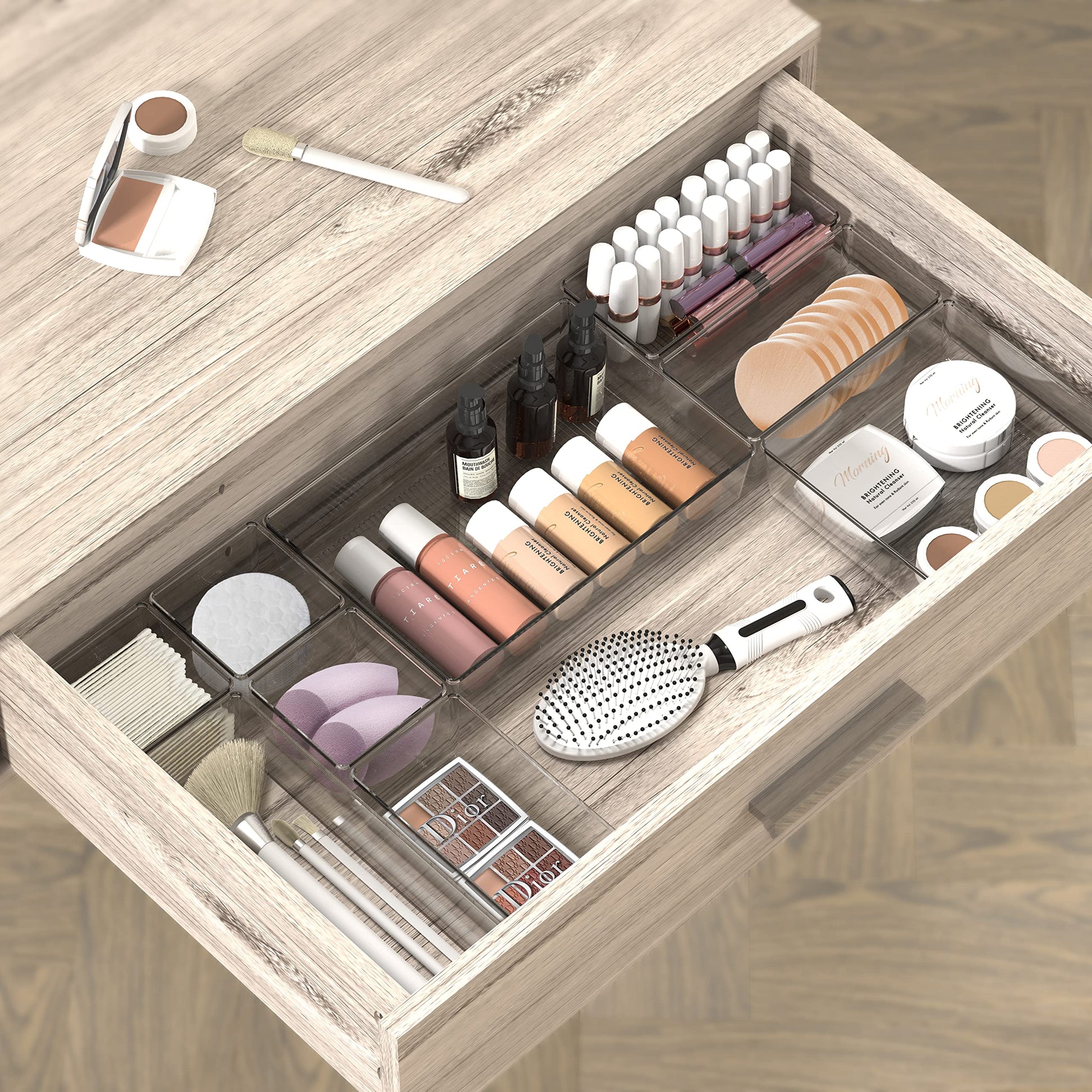 Transparent Drawer Organizer Desk Drawer Divider Organizers and Storage Bins for Makeup, Jewelry, Gadgets for Kitchen, Bedroom, Bathroom, Office